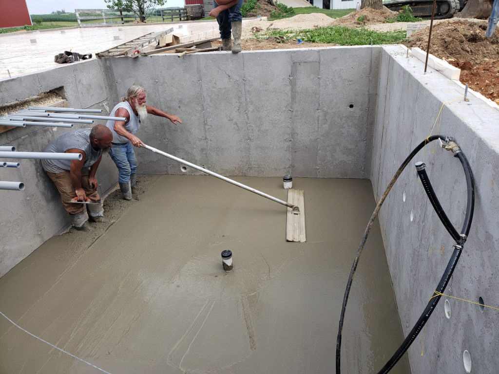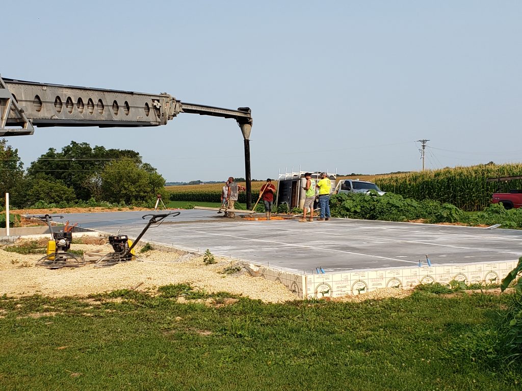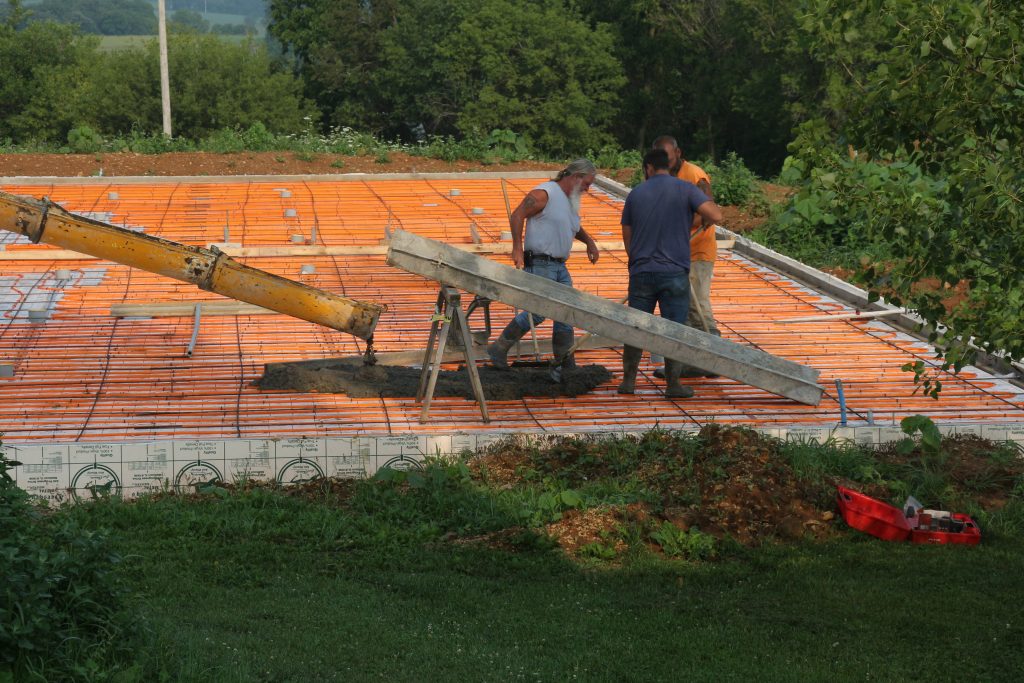 The floor was completed in three pours. The main floor was done in halves, and the basement was done in one go.