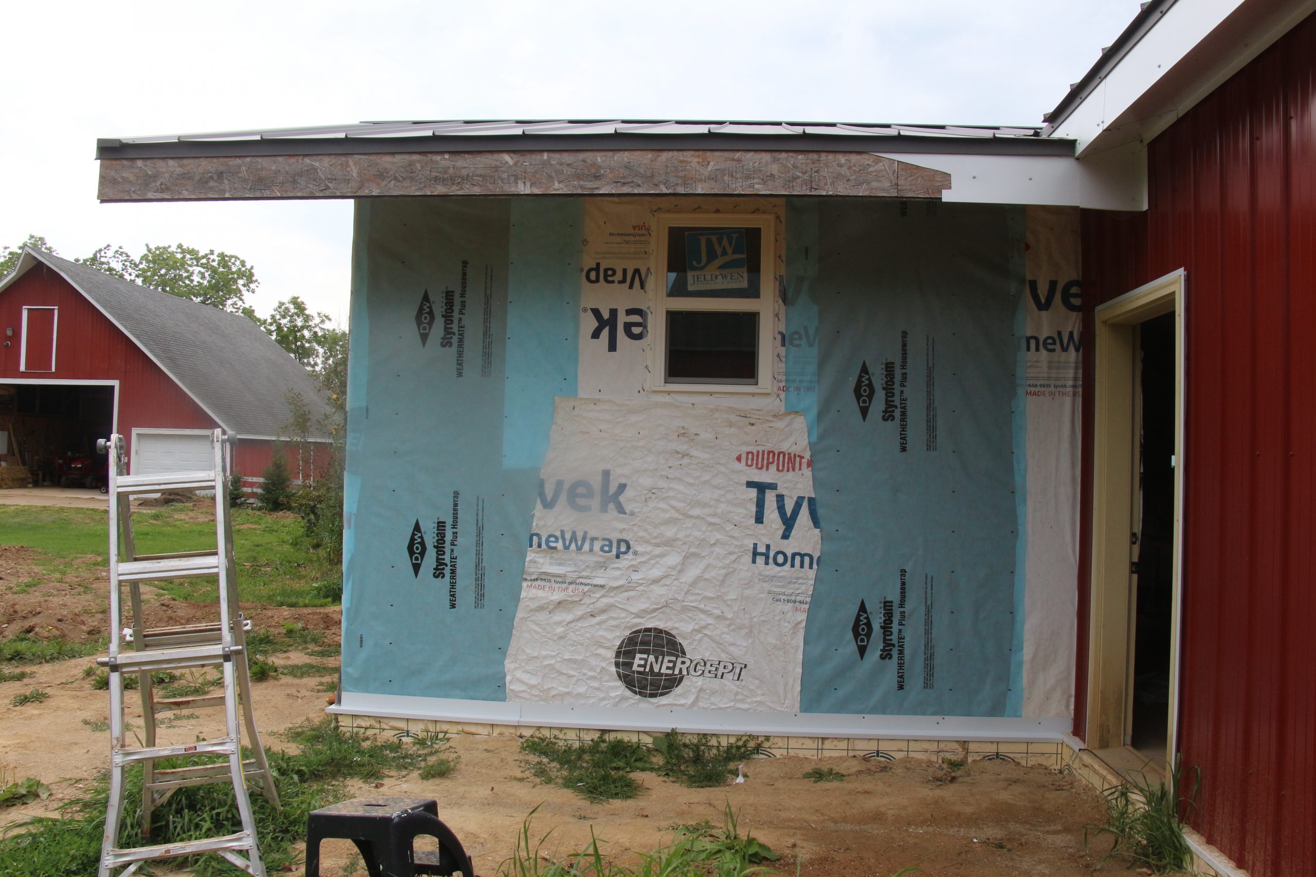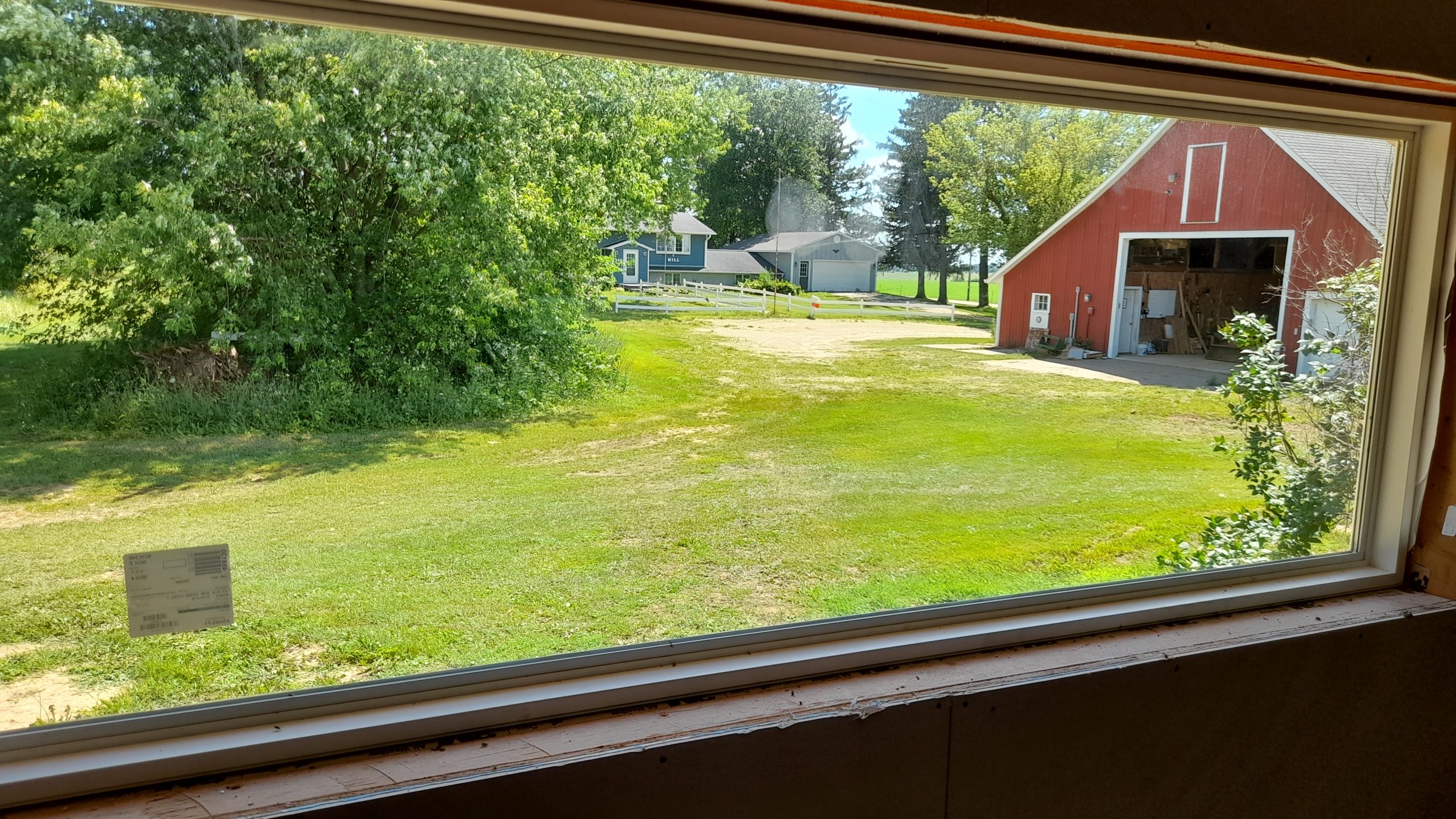 As noted previously, I decided to replace the mezzanine casement window with a picture window. TO ensure there was adequate ventilation I decided to add a double hung window. One of the wonders of SIP construction is that you can just cut a hole in an existing SIP panel, and put the window in. All I had to do was check with the manufacturer that there were no structural components where I planned my cut.